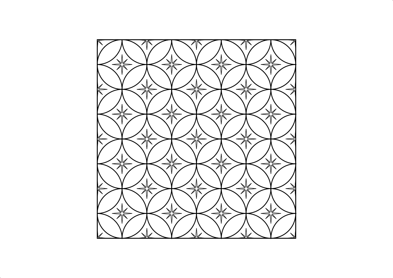 幾何学模様 幾何学模様)麻の葉のマンダラ塗り絵 01-3