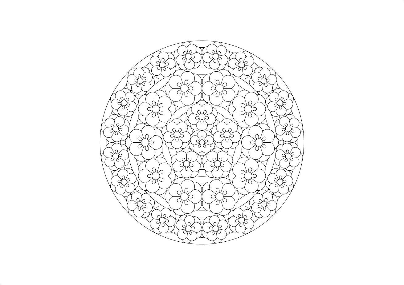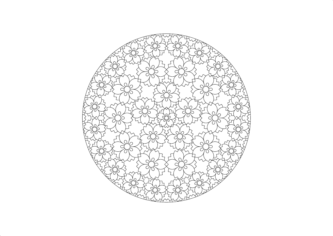 幾何学模様 幾何学模様)花七宝のマンダラ塗り絵 01-5